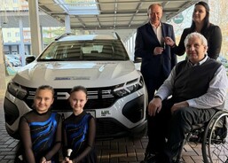 Poté přišel okamžik, na který všichni čekali, a to slavnostní předání vozidla. Následný ceremoniál proběhl venku, kde nový „člen charitní rodiny“ poprvé oficiálně převzal svou roli. Nechyběla ani malá zkouška funkčnosti. Zaznělo slavnostní zatroubení a auto na svou charitní rodinu poprvé symbolicky „mrklo“ světly. Úsměvy přítomných napověděly, že si tento moment všichni skutečně užili.